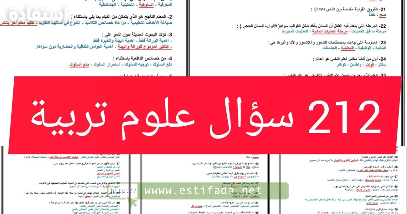 ☑ اقرأ أيضًا: 212 سؤالا QCM في علوم التربية للإستعداد لمباراة التعليم