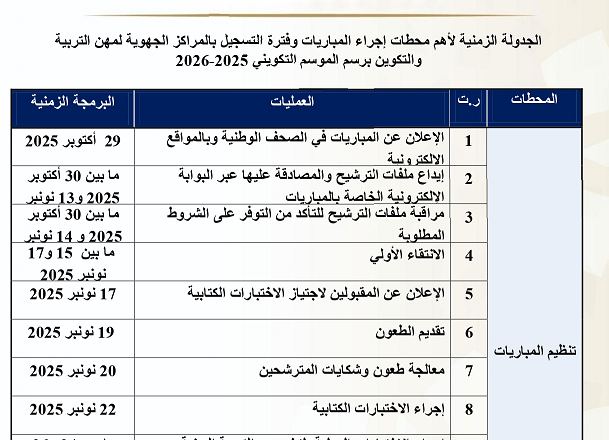 الجدولة الزمنية لمُباراة التعليم دورة نونبر 2025