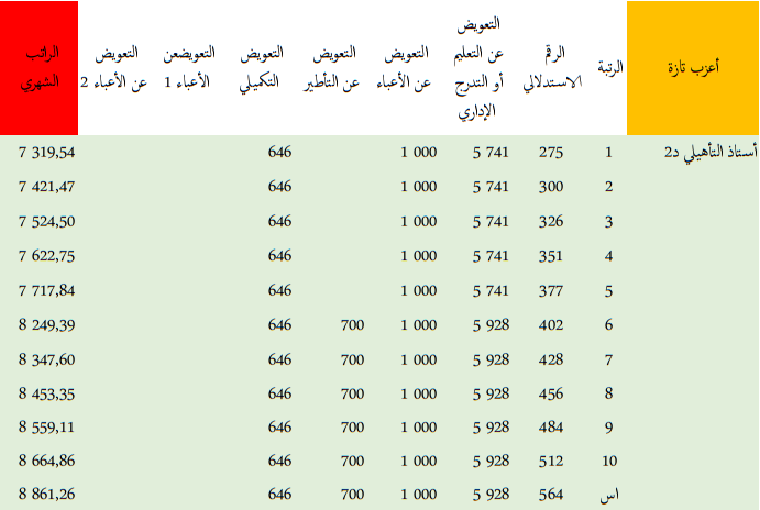 وتجدون أيضا جميع رواتب الأساتذة حسب السلم (الدرجة) و الدرجة: