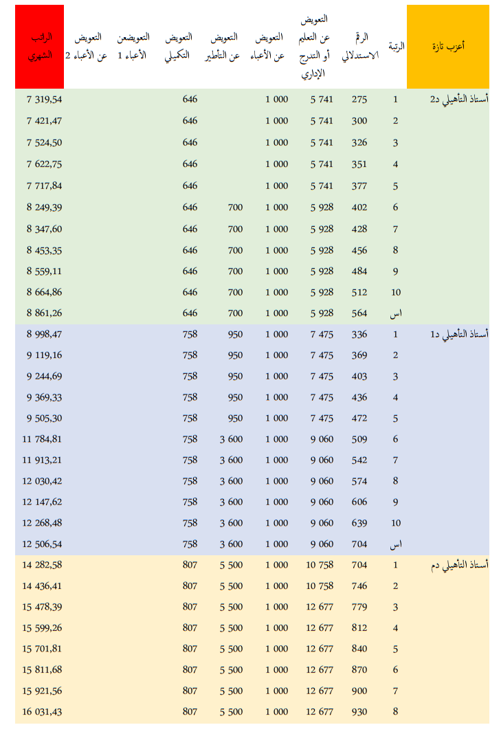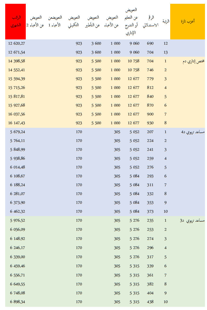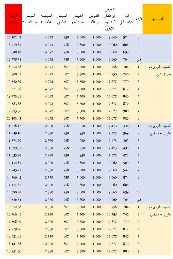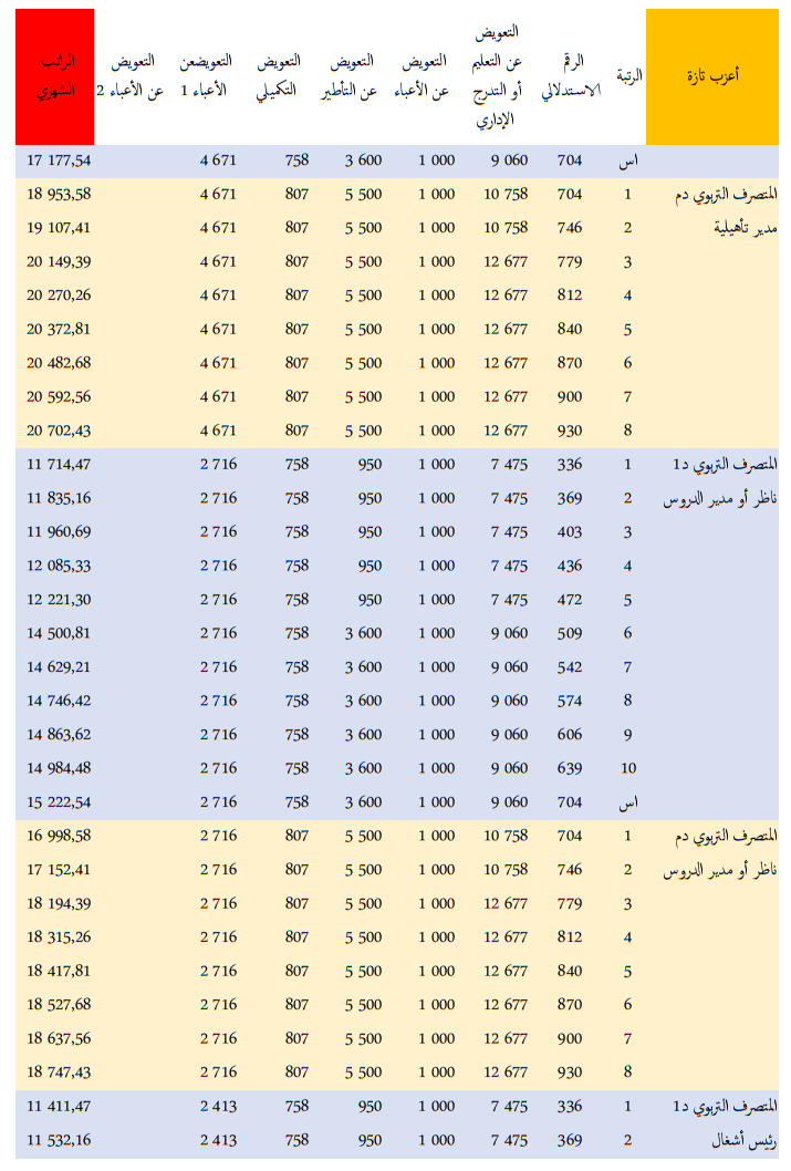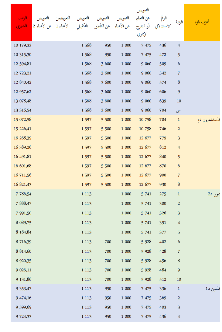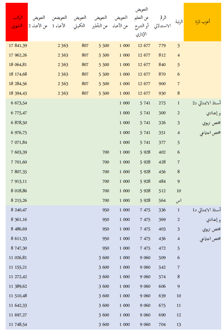 إليك جداول الرواتب حسب الإطار القانونيالجديد لموظفي قطاع التربية و التعليم