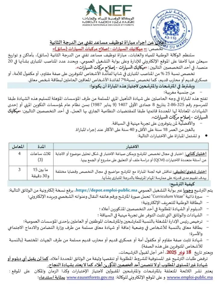- الوكالة الوطنية للمياه والغابات تعلن عن مباراة توظيف لعدد 20 منصبًا.