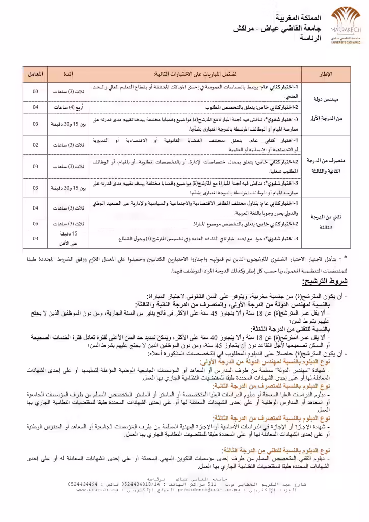 في البداية، من المهم التأكيد على أن المعلومات الواردة في هذا المقال هي معلومات عامة، وأن التفاصيل الدقيقة حول المسابقة ستكون متاحة على الموقع الرسمي لجامعة القاضي عياض. لذلك، ننصحكم بزيارة الموقع باستمرار للاطلاع على آخر التحديثات.