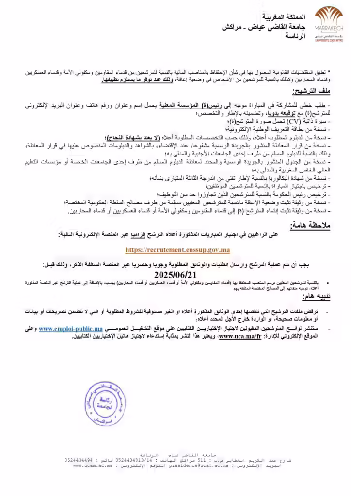 Concours Université Cadi Ayyad 2025 (18 Postes): دليل شامل للمتقدمين